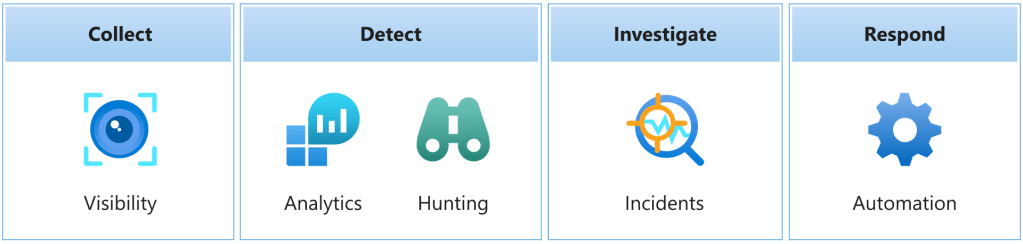Azure Sentinel helps you enable end-to-end security operations including collection, detection, investigation, and response: